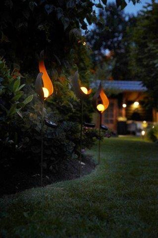 Magst du Brocante und leicht verwitterte Edelsteine? Dann ist dies die Lampe für Sie! Diese Metallfackel "Ornament Swirl" mit einem rostigen Aussehen verleiht nach der Dämmerung einen wunderbaren Glanz. Die echte Glaskugel ist mit einer Flammen-LED ausgestattet, die es so aussehen lässt, als ob sich eine echte Flamme im Inneren befindet. Unten wurde ein Haken angebracht, damit die Lampe leicht in den Boden eingesetzt werden kann und stabil bleibt. Sieht auf einer Terrasse, neben einem Gartenweg oder in einem großen Gartentopf nicht fehl am Platz aus. Sie können diese Brillanz tagsüber und abends den Komfort der Lampe genießen. Die Serie der Metalllampen enthält 3 verschiedene Modelle: "Swirl", "Embrace" und "Moon", die sehr gut miteinander kombiniert werden können und alle sehr gut in eine natürliche Umgebung passen.