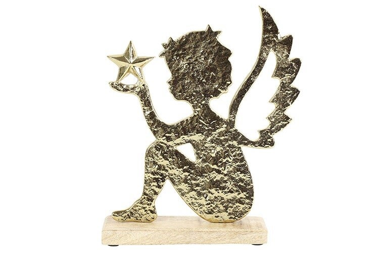 Zeit für ein Weihnachtsparadies mit diesem wunderschönen goldenen Weihnachtsschmuck aus Aluminium in Form eines Engels. Dieses raffinierte Dekorationsstück bereitet jeden Raum auf die Wintertage vor und hat eine einzigartige Form, die es zu einem auffälligen Prunkstück für jeden Raum macht, egal ob auf der Fensterbank, auf einem Schrank oder anderswo. Das rustikale Finish verleiht ihm einen modernen und luxuriösen Look, der sich perfekt in jeden Einrichtungsstil einfügt. Ergänzen Sie Ihr Weihnachtssortiment mit diesem schönen Deko-Stück